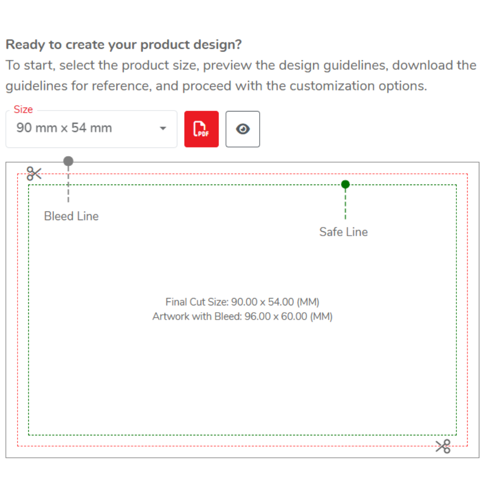 To ensure that no important elements (text, graphics, images) get cut off from your paper product, make sure to keep such elements at least 3 mm away from the edge of your finished product dimensions. Click here to know how to set up 3 mm safety margin.